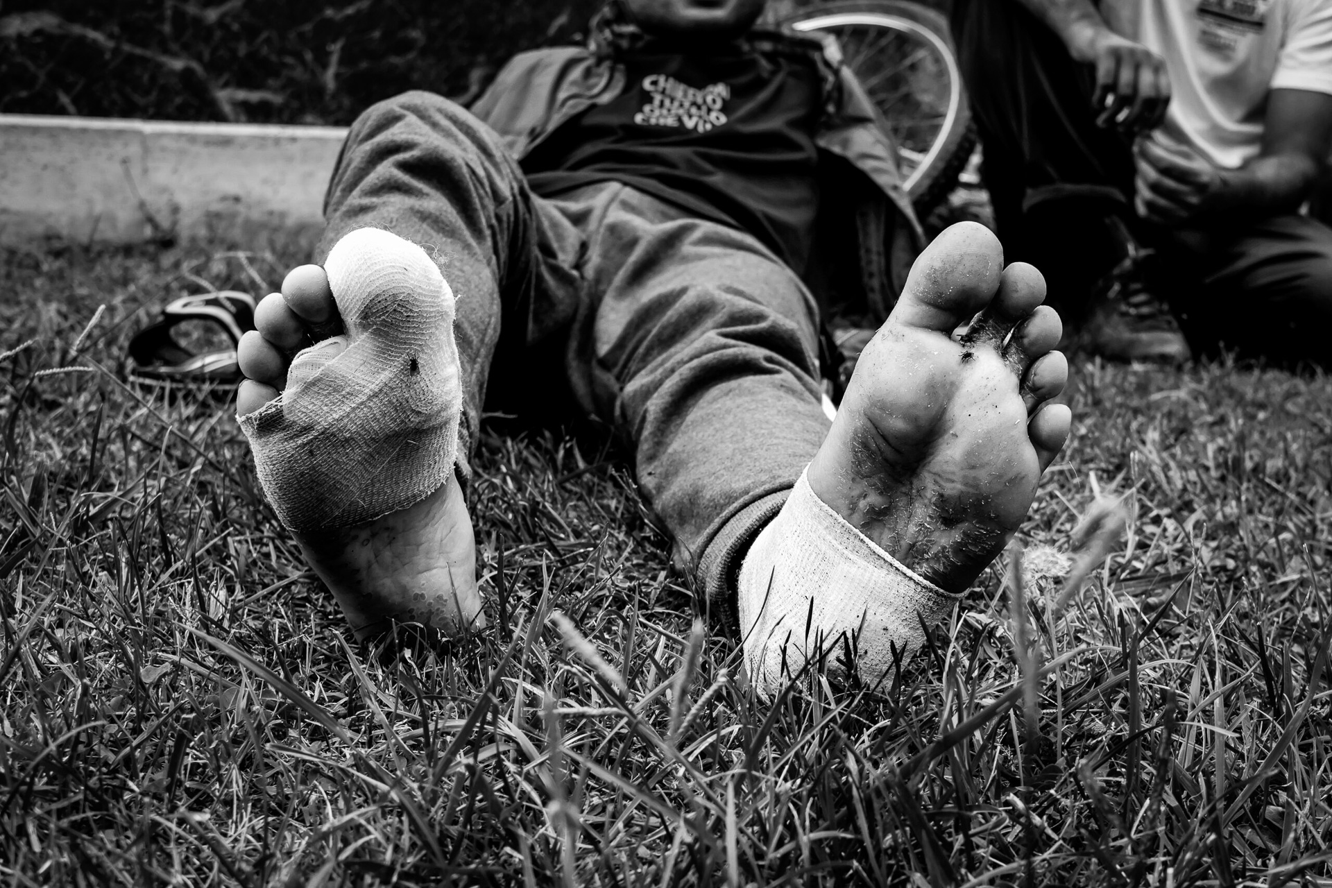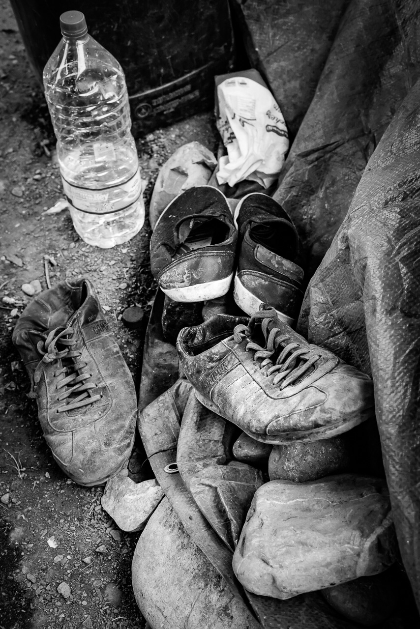 Il progetto copre il periodo dal 2018 al 2020, quando molte persone in transito sceglievano di rifiutare l’accoglienza ufficiale della Croce Rossa per vivere in un campo autogestito sulle rive del fiume Roja. Qui, sotto un viadotto autostradale, alcuni volontari e ONG offrivano servizi essenziali come acqua potabile, cibo, vestiti e ricarica dei telefoni, spesso l’unico contatto con la propria casa e con gli affetti.