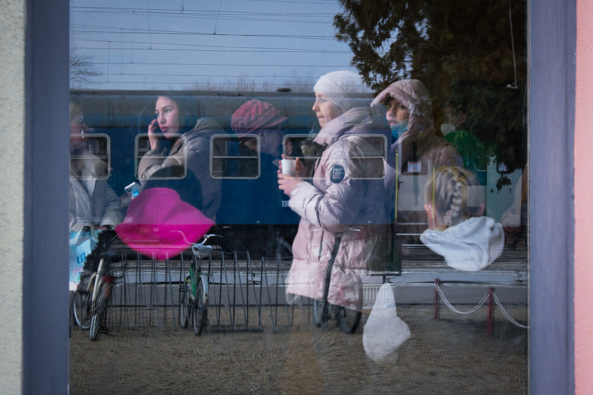 - Some Ukranian refugees are seen at the train station of Zahoney, Hungary, waiting to be moved to a shelter, March 3rd 2022.